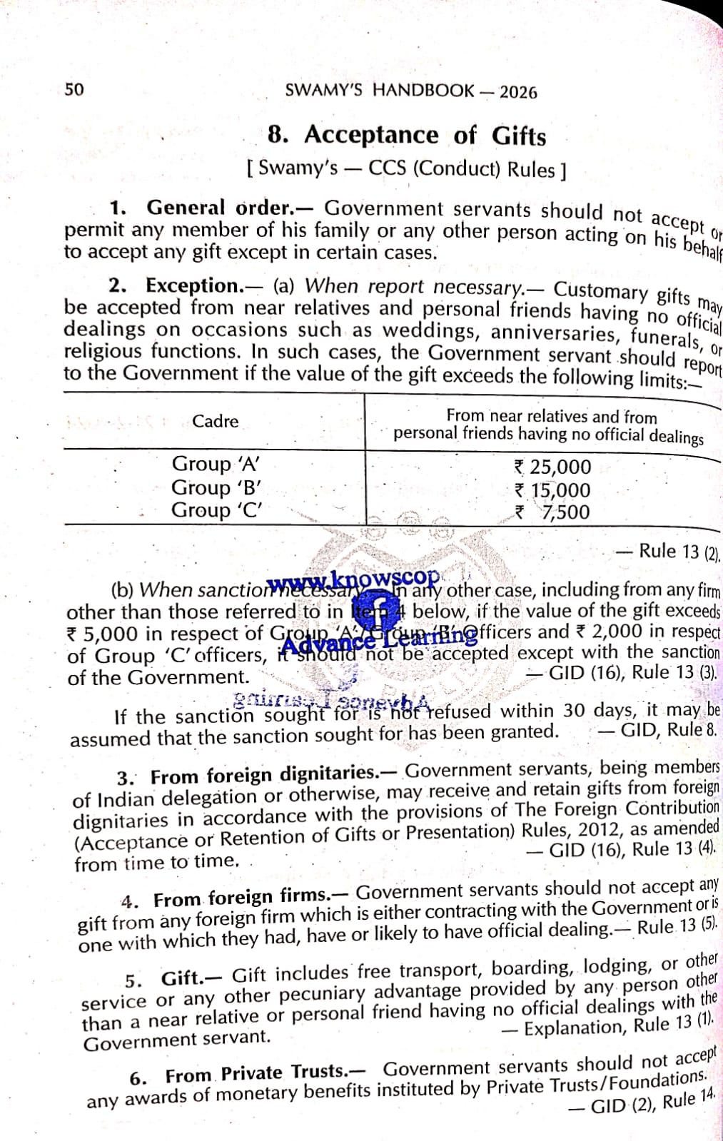Under the Swamy’s Handbook 2026, the rules relating to acceptance of gifts are clearly explained with reference to the Central Civil Services (Conduct) Rules. These provisions aim to ensure transparency, integrity, and fairness in public administration.