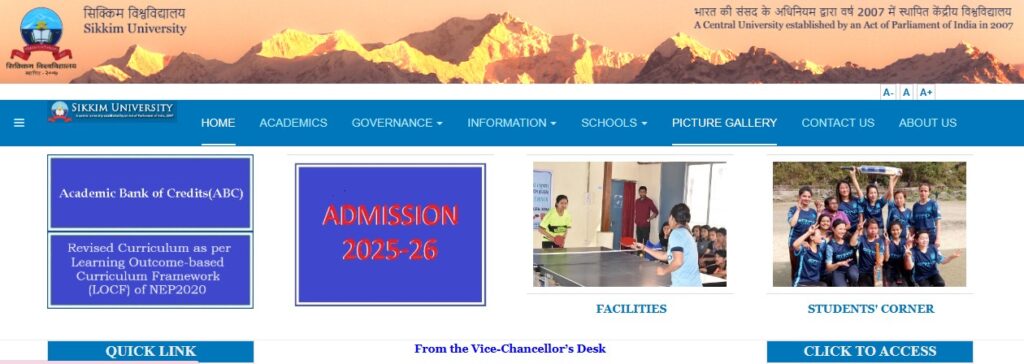 Sikkim University, a prestigious Central University established by an Act of Parliament, has earned a strong reputation for academic excellence, research innovation, and inclusive higher education. Located in the serene Himalayan state of Sikkim, the university provides an intellectually stimulating environment that nurtures research, creativity, and critical thinking.