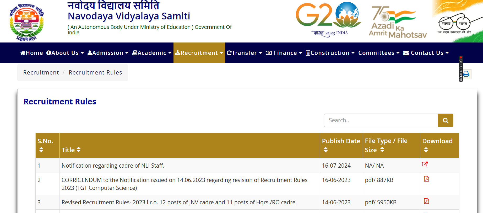NAVODAYA VIDYALAYA SAMITI RECRUITMENT RULES
